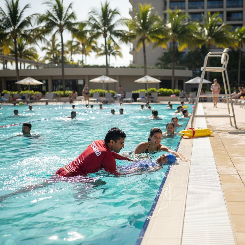 A Pool Lifesaver is someone trained to rescue a drowning person while keeping themselves safe. They are skilled in CPR, first aid, and aquatic rescue techniques.